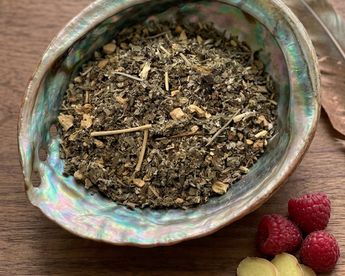 Iron-rich nettles and mineral-dense strawberry leaves replenish and restore. Designed for the post-cycle phase.